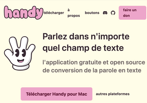 Handy.computer est un outil de speech to text qui fonctionne uniquement en local. Pas d’abonnement, tout est gratuit, et pas de cloud… Avec Handy, il faut juste configurer un raccourci clavier. Et ensuite vous parlez et le texte apparaît comme par magie.