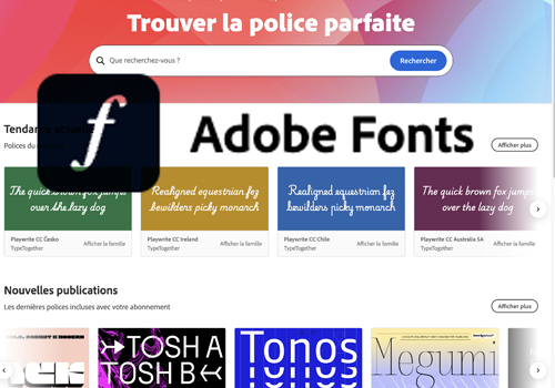 Adobe Fonts est une bibliothèque de polices pour les abonnés Creative Cloud, offrant des milliers de typographies pour applications et sites web, avec des outils IA et des collections personnalisées. Permet de créer des designs uniques avec des polices tendance, classiques ou originales, et des outils de recherche de police similaire.